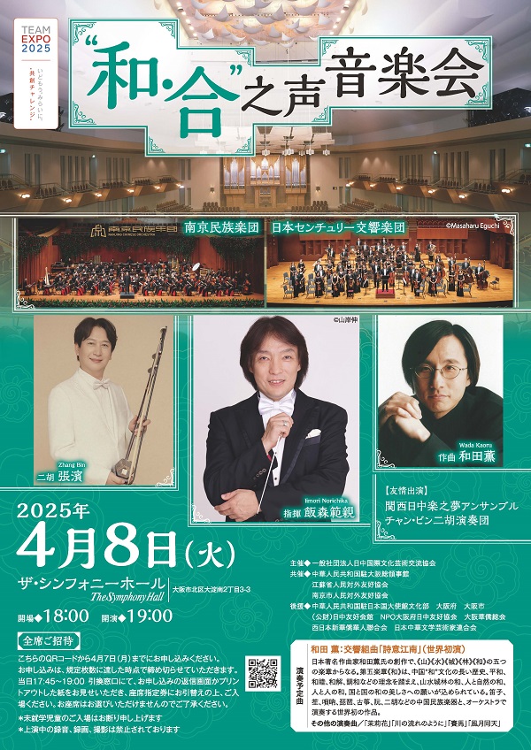 2025年4月8日(火)、大阪・ザ・シンフォニーホールにて、日中の文化交流をテーマにした音楽イベント「“和・合”之声音楽会」が開催される。日中国際文化芸術交流協会の主催の...