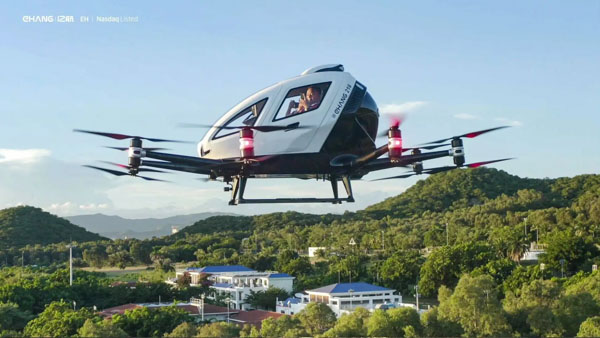 記者が機体に乗り込み、安全ベルトを締め、起動ボタンを押すと、複数のプロペラが回転を始めた。無人のまま飛行器は静かに上昇し、高度数十メートルに到達。旋回や巡航など...