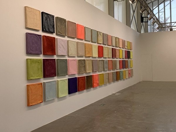 薄いベージュ色の作品が多かった初期のものに比べ、近年の色とりどりのミニマリズム感ある作品たちは、明るいビビットな色が目立つ。コロナ禍であまり外に出られない人間への応援歌にも見えるのは読み違いかもしれない。