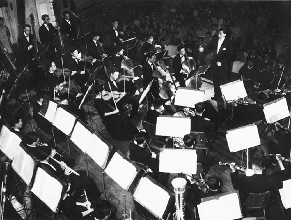 上海在住で世界的指揮者の曹氏は1925年生まれの98歳、現役でまだ指揮をしている最年長指揮者である。江蘇省江陰生まれの曹氏は、10代の頃から音楽に造詣が深いことを先生方に見抜かれていた。大学では、山東大学芸術学部で指揮の勉強をし、軍の文工団(注1)で指揮者を務めていた。新中国成立後は、北京映画楽団、上海映画楽団等、映画会社のオーケストラで映画音楽を中心に仕事をしていた。のち1955年、彼は旧ソ連のモスクワ音楽大学に留学する。全国選抜で一人しか選ばれない超難関を勝ち抜いての国費留学生だった。モスクワ音楽大学では有名な指揮者・レオ・ギンズブルグに師事し、指揮マスタークラスに所属していた。
