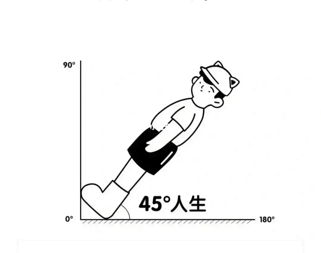 「45度青年」とは、端的に言うと、現実の生活において「競争に完全に巻き込まれることも、完全に寝そべることもなく」、45度の姿勢を保つことを指している。