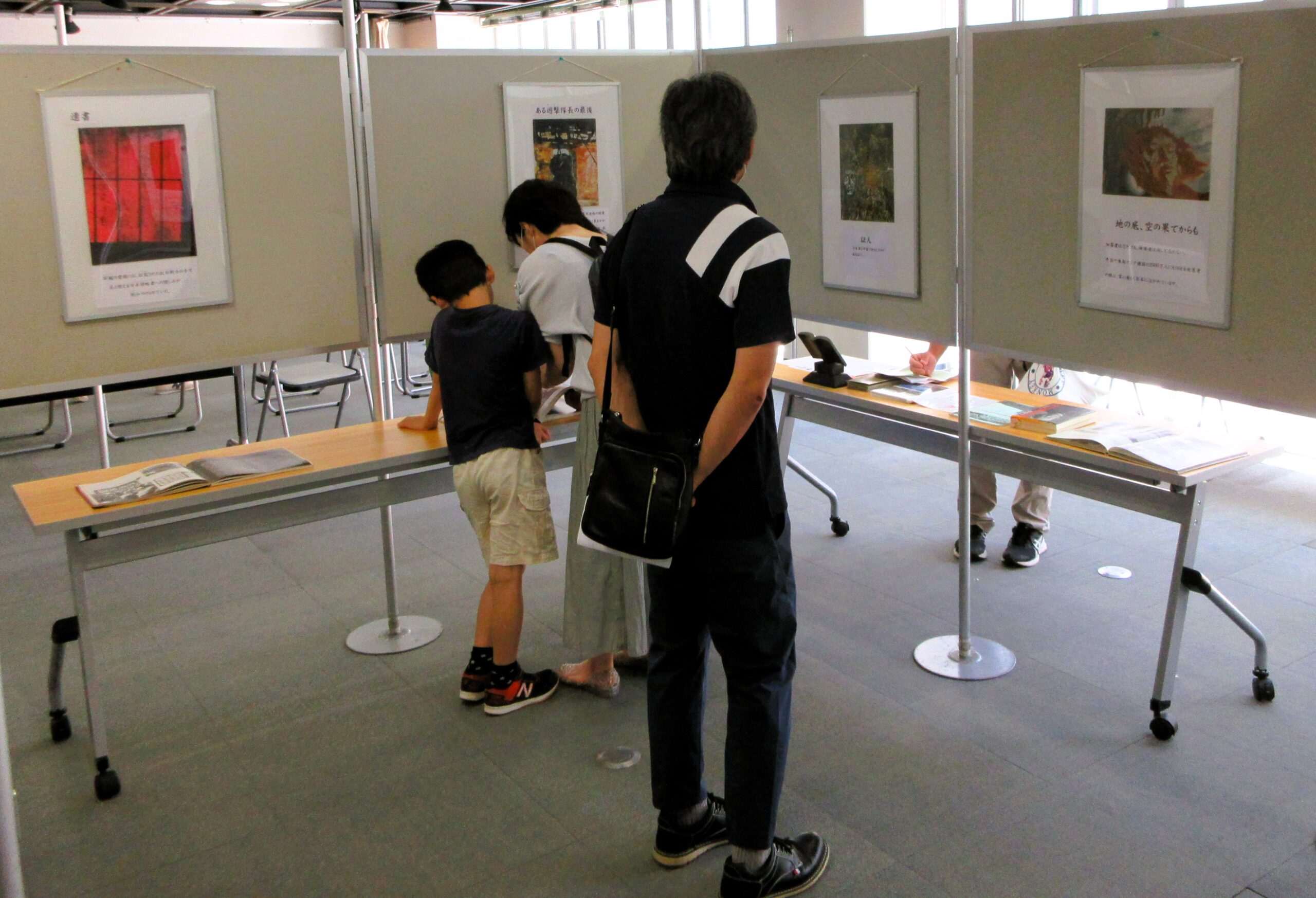 反省絵画と呼ばれるその筆致は写実的というよりやや抽象的で、トーンも暗い。「観た人がどう感じるかがすべて」だと北川氏は語る。「桧山さんは既にこの世にいない。桧山さんのことや、戦争当時の状況を絵の中から読み取るのはとても難しい。でも、それに触れる場を作れば絵を遺した人の思いに繋がると思って、準備しました」。また、絵画展が「少しでも過去の歴史に向き合う場」になればと、桧山氏の戦前戦後の歩みを説明するパネルを新たに追加し、配布用のリーフレットも作成した。一見すると、国交回復以前から存在する歴史問題に、若い世代も継続的に取り組んでいるという構図にも見える。しかし、北川氏の思いは過去を踏まえた未来に向かっていた。