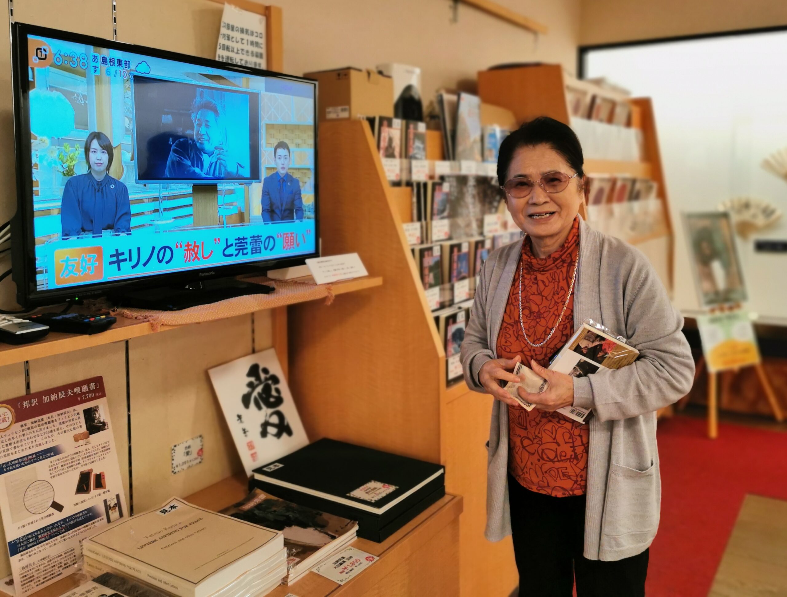 島根大学の竹永三男教授から、島根県安来市にある加納美術館には独自の平和教育の可能性が宿っているとの教示を受けていた。そこでは、戦争被害だけでなく、日本が先の戦争でアジア諸国に何をしたのかを踏まえて、複眼的に平和を問い直そうとしていると。先日ようやく、静かな山里に佇む同美術館を訪れることができた。同館は、その名を冠する画家・加納莞蕾(かん らい)(1904-1977)の絵画を展示しているだけではない。平和実践家であり、村長でもあった加納の“戦争と戦後”を取り上げた“平和博物館”でもあった。そのユニークさは、加納莞蕾の思想と実践に由来する。加納の娘でもある加納佳世子名誉館長から、近年、歴史教科書や各種メディアでも莞蕾が取り上げられていると聴いた(写真1)。強く印象に残ったのが、莞蕾の次の言葉だ。「戦後の日本人は苦しまなければならない」。莞蕾の人生を踏まえないと理解しにくい思想だが、彼が向き合った課題が現在を生きる私たちの課題でもあることを教えてくれる。