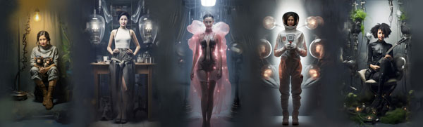 彼女は女性性やジェンダーへの関心も深く、「女の前世今生」という作品を発表している。この作品が過去100年をテーマとしているならば、対照的に未来100年をテーマにした作品もあるという。館内の壁一面には彼女が表紙を飾った雑誌や書籍がびっしり飾られている。