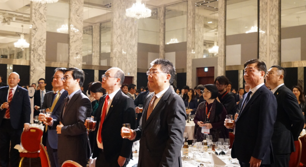 日本中華總商会の厳浩評議員会会長が乾杯の音頭を取り、来賓とともに喜びを分かち合った。そして、日本中華總商会はこれからも後進の育成に注力し、継承を着実に進めていきたいと決意を述べた。