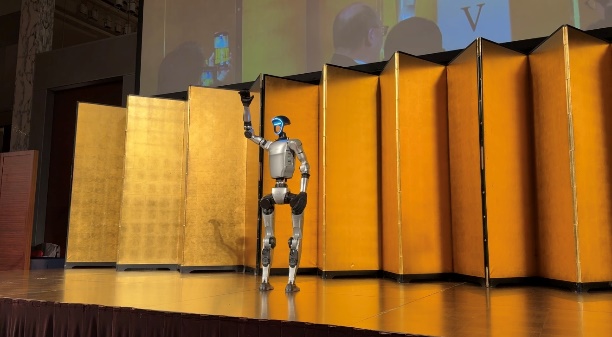 宇樹科技のスマートロボットが場内を巡回し、ゲストと交流した。スマートロボットの登場は、人びとの生活に利益をもたらす科学技術の社会的意義を訴えるとともに、日本中華總商会は中日各界の橋渡しをし、世界の華商に橋を架け、現在と未来の橋渡しをするとの責任と悲願に呼応するものであった。
