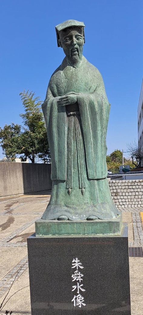 光圀に朱舜水を推挙したのは、光圀の伯父に当たる尾張藩初代藩主の徳川義直と伝わる。義直は徳川家康の九男であり、光圀の父、水戸藩初代藩主の徳川頼房は十一男である。義直は儒教をよく学び、孔子廟を建て、明の文人・陶芸家の陳元贇を尾張藩に招き、国際情勢のみならず作陶、習字などを学んでいた。