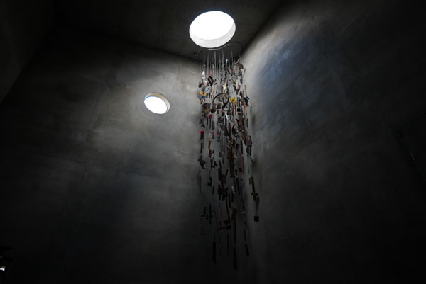 クリスチャンの彼らが毎回食事する前に行う祈り、その「アーメン」のタイミングに、いつもワンテンポ遅れてしまう自分が少し滑稽だった。柱がすべて取り付けられ、マルタの椅子に座って記念撮影をした。森の中で祈りをしているような錯覚に陥る今回の作品も、光りには拘ったようだ。年に一度だけ十字に光りが当たるという。縦はガラスで、横はコンクリートの壁を粗く削って作られていた。鳥の囀りが聞こえてきそうな「祈りの家」、雨の中、名の知れぬ中国原産の小さめの木を植えて帰ってきた。木が成長したらまた訪れる約束を交わしながら。