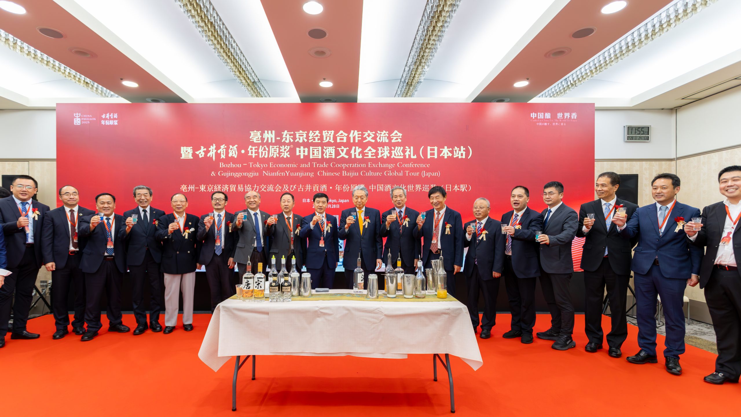 イベント会場では、梁金輝董事長が挨拶し、「古井貢酒は酒を媒介に中華の伝統文化を世界へ広めてまいります。本イベントを契機に日本のビジネス界との協力を深め、より高品質な古井貢酒を日本の消費者に届け、日中経済交流に新たな活力を注ぎたい」と述べた。