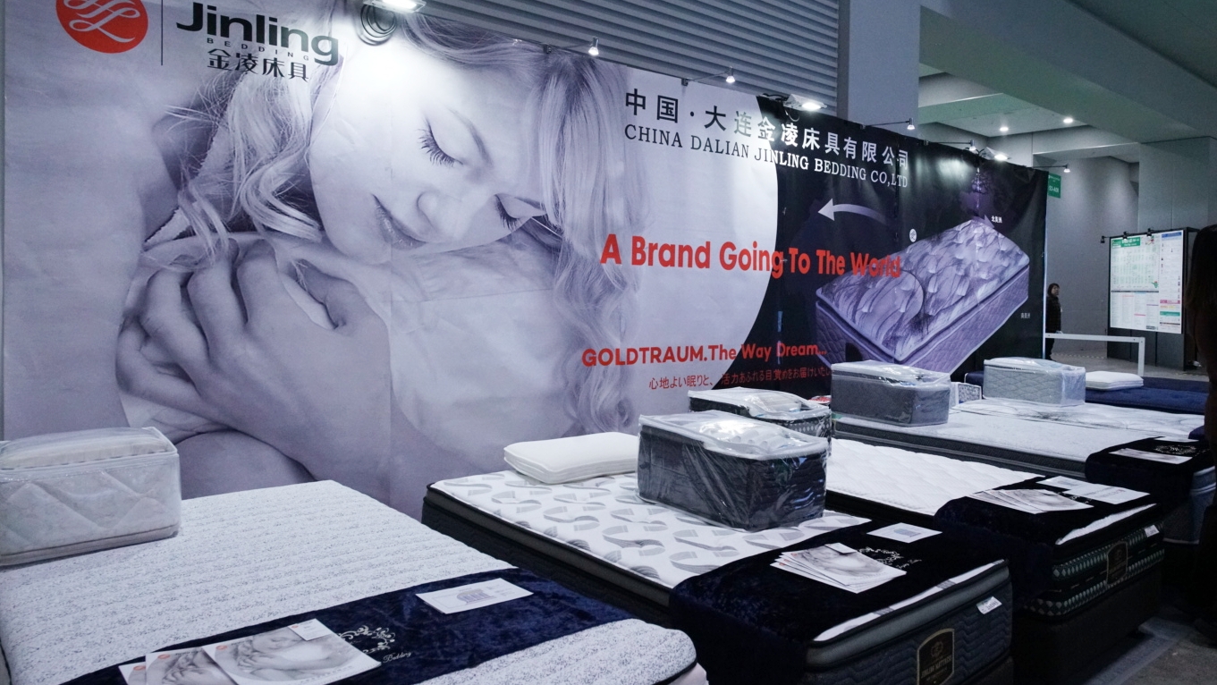 堅固さと信頼性を備えたベッドが一列に並び、品質と職人技が生み出す快適性と優れた支持力を印象づけた。今年で創立40周年を迎える大連金凌床具は、ベッド・ソファの専門メーカーであり、従業員約500名、工場面積は5万平方メートル超。製品の主力は輸出用で、その85%以上が米国、日本、韓国、フランスをはじめ、東南アジアや欧州などへ向けられている。年間売上は100万ドル(約1億5700万円)を超え、用途に応じて選べるファブリックは1000種以上。年間出荷台数は20万台を上回る。