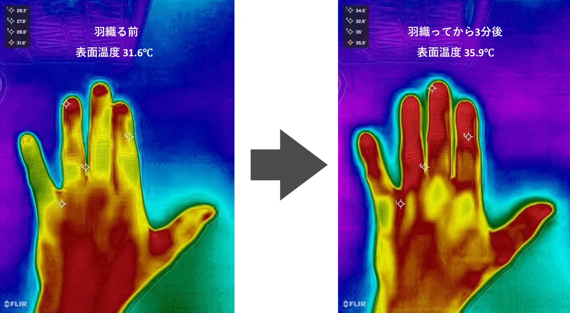 機能面では、「無齢」が放射する遠赤外線が身体に穏やかに作用し、血液循環を促すことで、手足の冷えや違和感への配慮、夜間の生活リズムの安定をサポートすることが期待されている。継続的な着用を通じて、日々のコンディション管理や睡眠環境の質向上に寄与し、生活全体のクオリティ向上につながる。