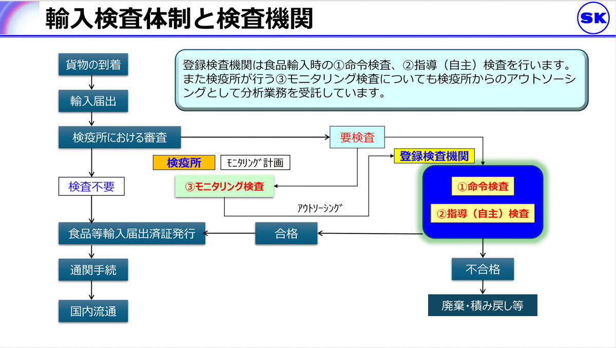 当協会は、1948年の設立以来、日本の貿易貨物に関する検査・分析・鑑定を行う第三者機関として業務を行ってきた。1994年には食品衛生法に基づく厚生労働大臣指定検査機関として指定を受け、その後の制度改正で登録検査機関となった。30年以上にわたり食品衛生分野の検査・分析を受託している。筆者自身も20年以上、協会で食品検査業務に携わってきた経験から、検査機関の視点で食の輸入と輸出について概説したい。