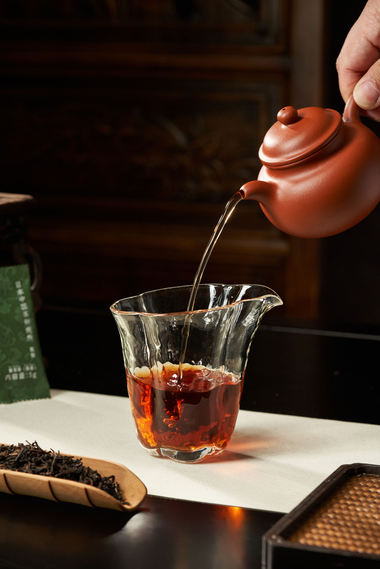 上質な茶葉は、茶葉本来の豊かな特性を保持し、伝統的製法によって、本格的な熟成茶がつくり出される。適切な貯蔵環境が、活性陳香と後発酵を促し、プーアル茶は時とともに香りを増し、理想的なプーアル熟茶が完成する。