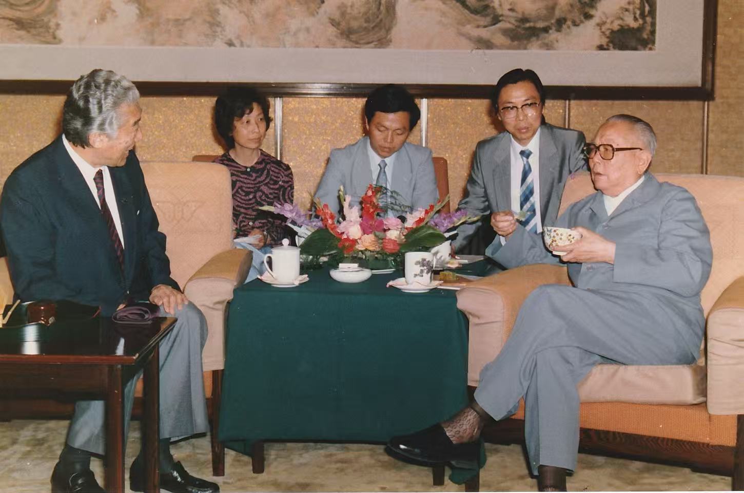 朱金諾 私が初めて千宗室先生、そして裏千家とご縁を持ったのは、1979年に訪日した時でした。1978年8月に『中日平和友好条約』が締結されると、中国政府は、廖承志氏を団長とする「中日友好の船」訪日代表団の派遣を決定しました。この知らせを受け、日本の日中友好協会および各都道府県の友好団体は、1000を超える団体・機関への訪問・視察を急ぎ手配しました。