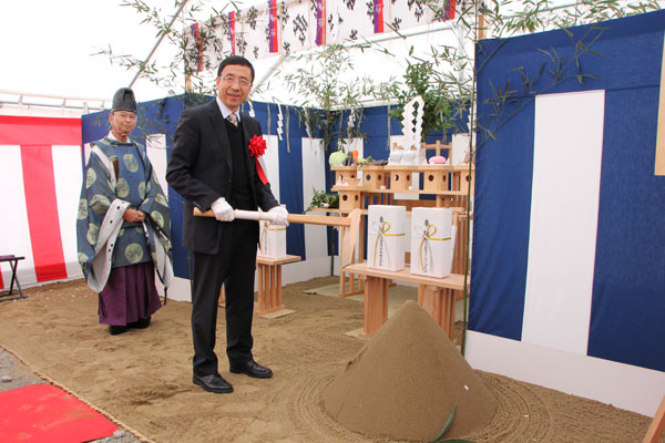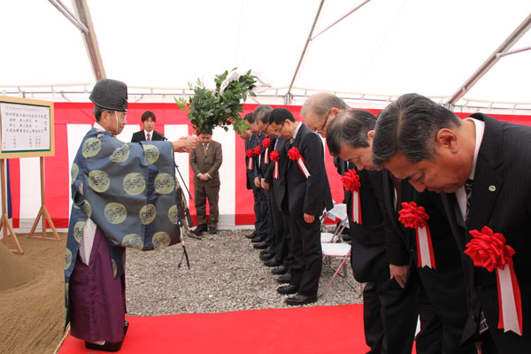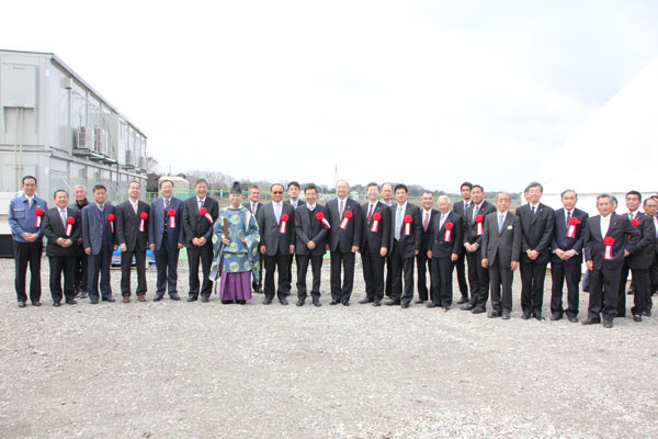 起工式は正午に開始され、上海電力日本株式会社は伝統的な「地鎮祭」による起工式を行った。日本では「地鎮祭」によって土地の神様に許しを得なければ工事の着工はできない。この儀式はまた工事の安全や順調な進行を祈るものであり、このような地元密着型の起工式は現地の住民にはおおむね好評であった。
