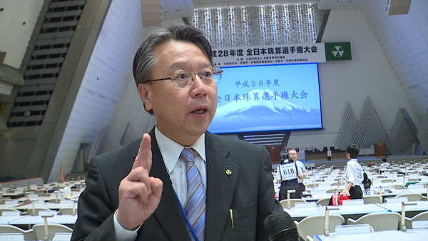 8月8日(そろばんの日)、国立京都国際会館において全国から総勢601名が参加し、60回目となる「平成28年度全日本珠算選手権大会」が開催された。土屋宏明選手(宮城県)が1500点満点を獲得し、前人未到の8度目のそろばん日本一という歴史的快挙を成し遂げた。主催者を代表して、公益社団法人全国珠算教育連盟の岡久泰大副理事長がインタビューに応じてくださった。