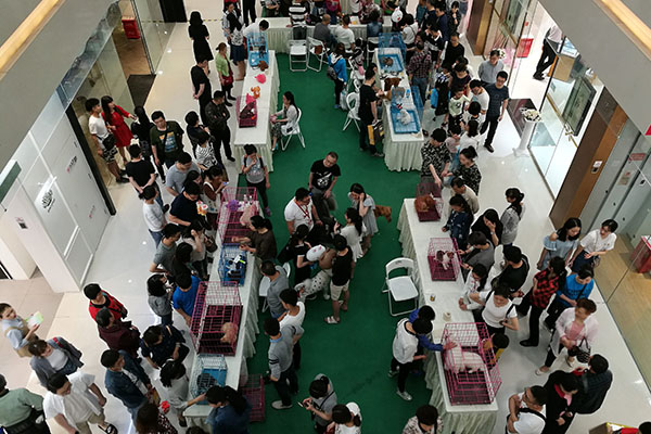 2017年のメーデー連休中、成都のデパートに設けたペットショップ