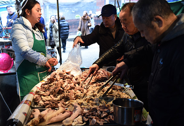 重庆のある老舗では多くの市民が羊のお肉を購入している