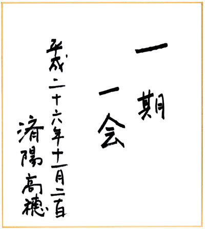 インタビューを終え、済陽院長に恒例の揮毫をお願いすると、「一期一会」と書いてくださった。「一期一会」とは茶道に由来する用語で、一生に一度の機会であるから大切にしなければならないという意味だ。人生は一度、一度の入院が二度とないように、済陽院長は患者のためにがんを根治したいと願うのである。