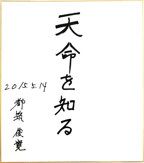 取材を終えて、恒例の揮毫をお願いした。院長はしばらく考えてから「天命を知る」と記され、「多くの人が、この速くて効果てきめんのレーザー治療を知りません。私は毎月無料でセミナーを開催し、レーザー治療を紹介しています。そして一人でも多くの方に問題解決への選択肢を提供したいのです」と語った。これこそ、都筑院長の天命であり、使命であろう。