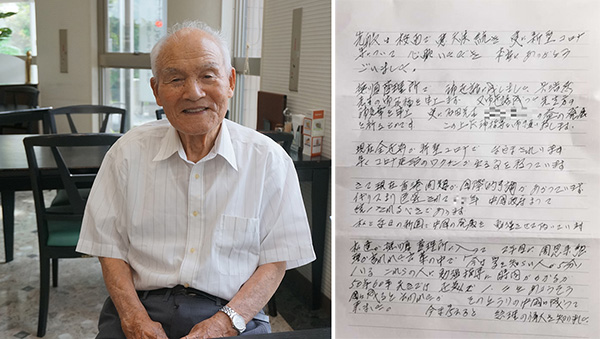 島根県の山あいの農村に暮らす上田克義(仮名、以下同)は、今年99歳を迎えた(写真下)。この年齢になると病気や身体の不自由を抱える人も多いが、上田は数年前まで自身で車も運転していた。今でも若い訪問者を自宅に迎えて、戦争体験・戦後体験を伝えている。筆者も数年前の訪問をきっかけに手紙のやり取りを続けている(写真下)。一般に、日本の軍隊経験者の語りは、戦争の悲惨さや戦地での苦難などが中心になる。そして、抽象的に〝平和への願望〟が語られることが多い。上田が口にしている言葉は、それとはまるで異なる。昨年6月に送られてきた手紙にはこうある。