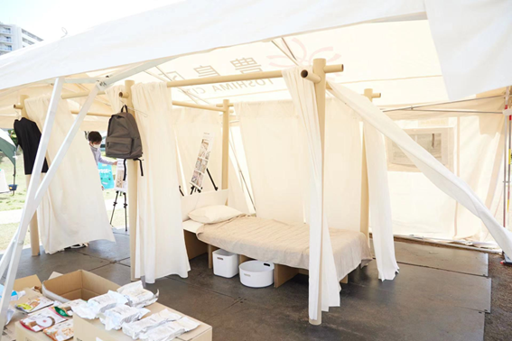 このイベントでは、日常生活用品を含む何が災害時に役立つか、怪我人が出た場合にはどのように毛布で簡易担架を作るか、一家4人が電気も水もない状況でいかに7日間生活するかを学ぶことができ、さらには避難所生活を体験することもできる。